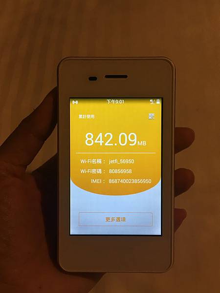 使用方式很簡單,手機開啟WiFi,連線至WiFi機提供的序號(如上),輸入密碼就能使用,本來擔心濟州島網路不穩,實際使用後超放心,網路十分流暢,重點是流量吃到飽,WiFi機蓄電量也很夠,開機整天只消耗一小格,因為耗電量不大,阿東也就沒有天天充電了!